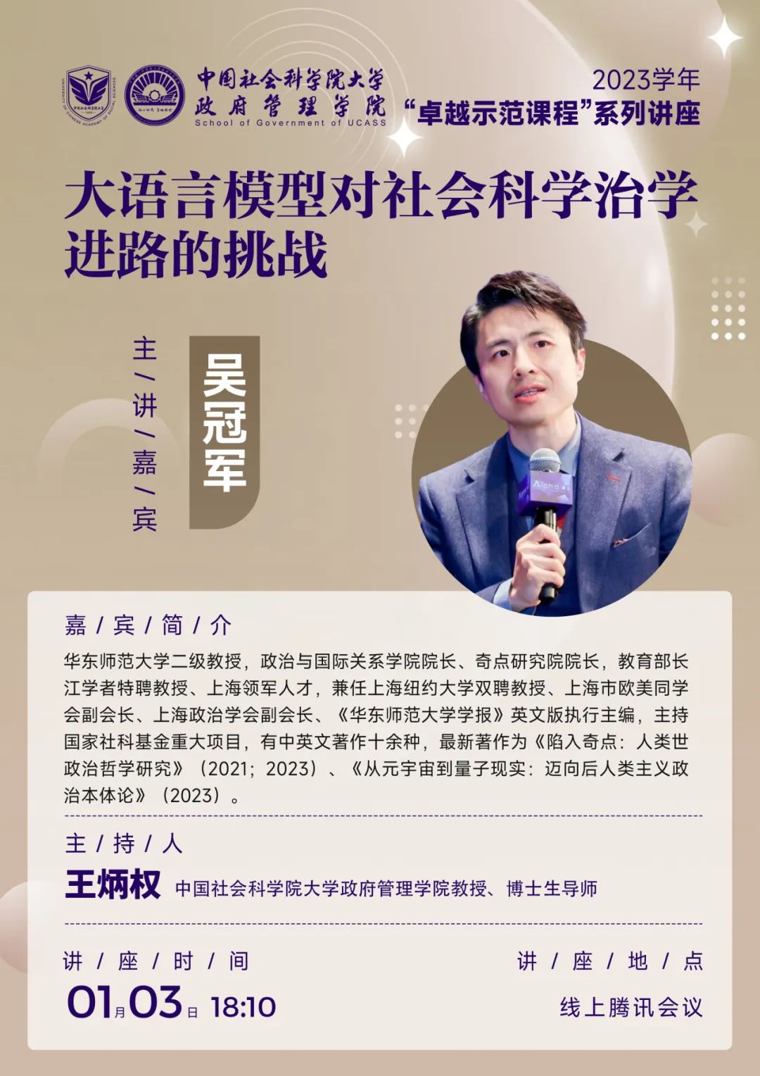 主讲人:吴冠军(华东师范大学特聘教授、政治与国际关系学院院长,教育部“长江学者”特聘教授)