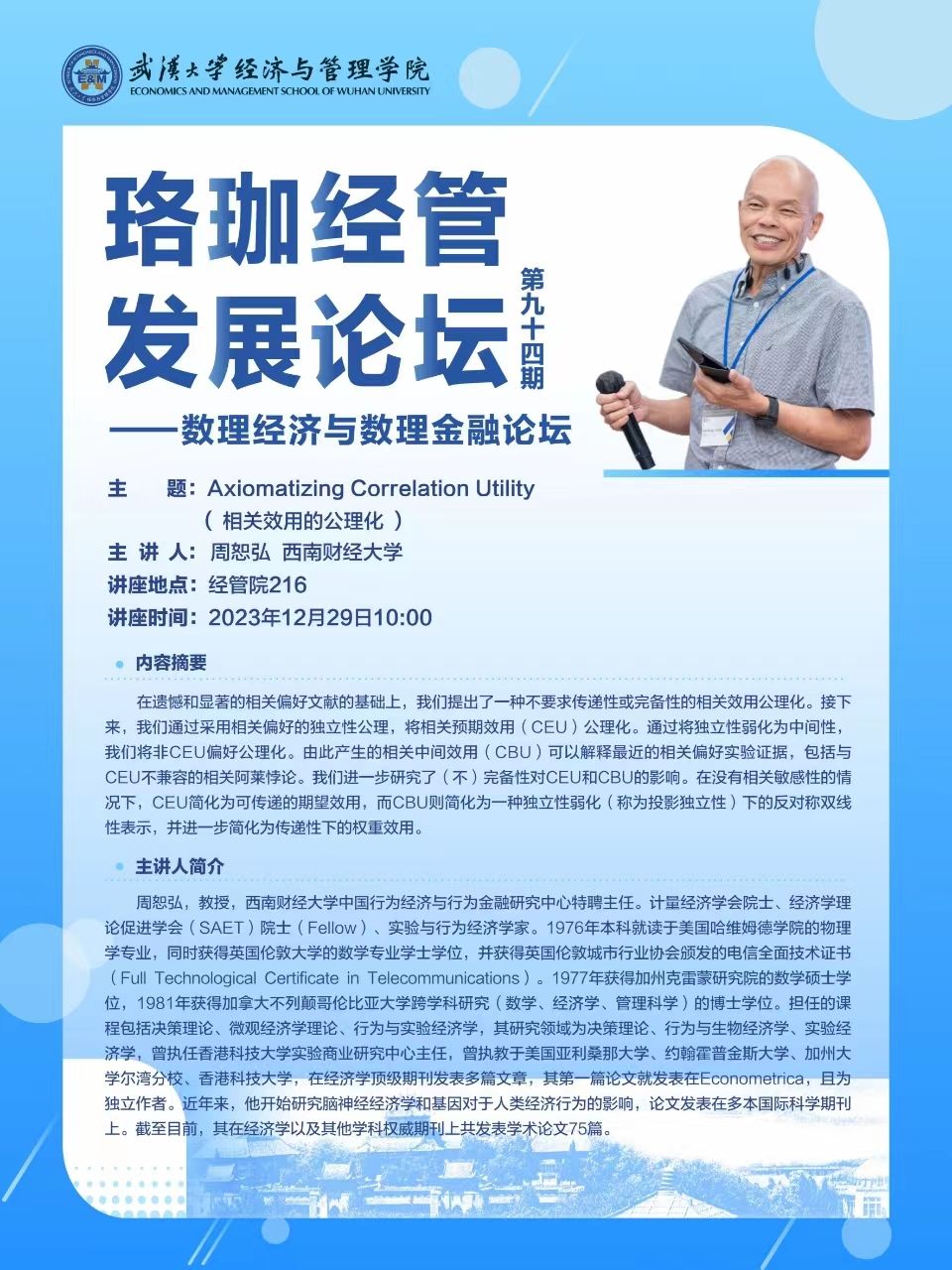 主讲人:周恕弘(西南财经大学中国行为经济与行为金融研究中心特聘主任、教授)
