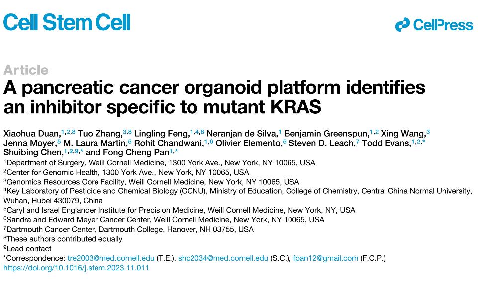 【学术前沿】Cell Stem Cell | 陈水冰等利用胰腺癌类器官平台筛选靶向突变 KRAS …