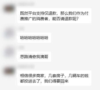 还有商家直接向世超吐槽,说他们商家也是消费者,能不能让淘宝把推广费仅退款一下。