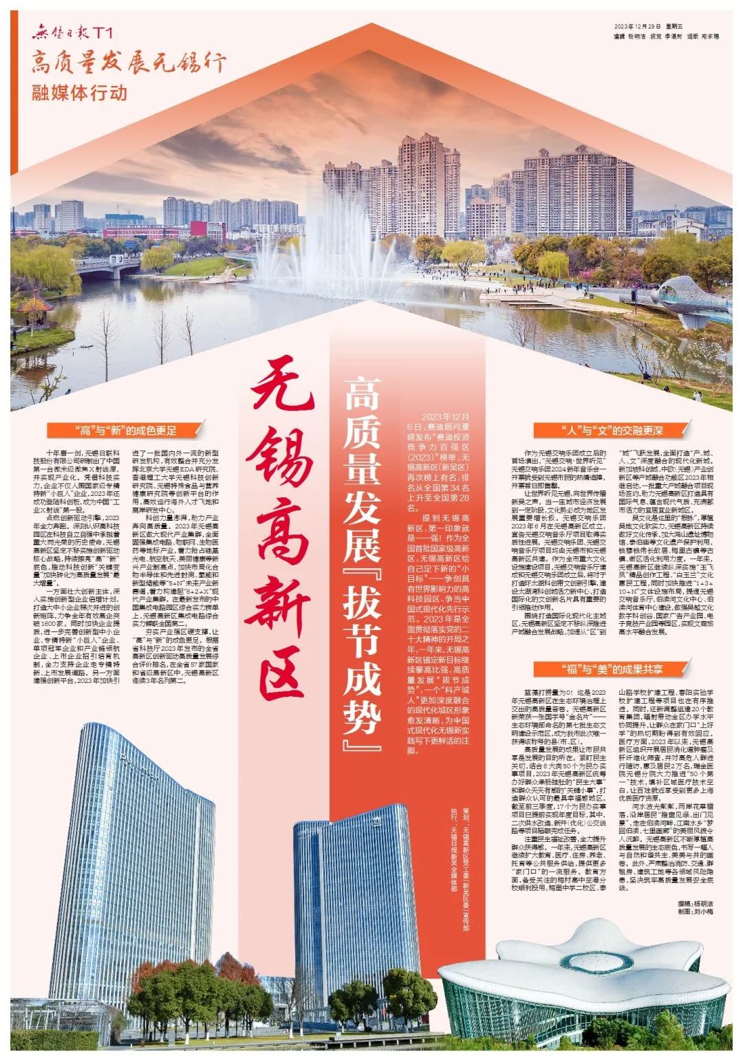 2023年是全面贯彻落实党的二十大精神的开局之年,一年来,无锡高新区锚定新目标继续攀高比强,高质量发展“拔节成势”,一个“科产城人”更加深度融合的现代化城区形象愈发清晰,为中国式现代化无锡新实践写下更鲜活的注脚。
