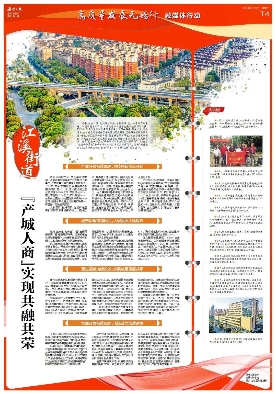 2023年,江溪街道始终把高质量发展作为第一要务,稳中求进、以进促稳,全力推动无锡高新区综保区协同发展区(无锡粤港澳服务贸易区)建设,辖区经济持续向好,民生福祉不断厚植,社会治理更加精细,以走在前、做示范的果敢担当奋力推进中国式现代化江溪新实践。