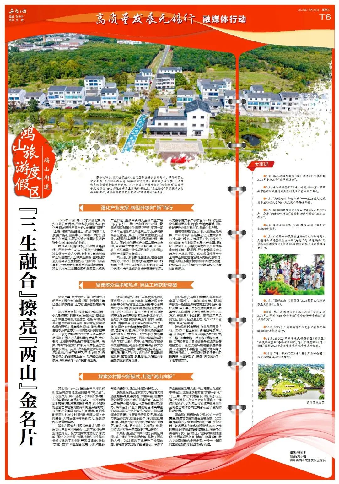 2023年鸿山旅游度假区(鸿山街道)以踔厉奋发的姿态,奋力奔跑在高质量发展的赛道上,“三生融合”积极探索乡村振兴新模式,持续擦亮宜居宜业宜游的“幸福高地”金名片。