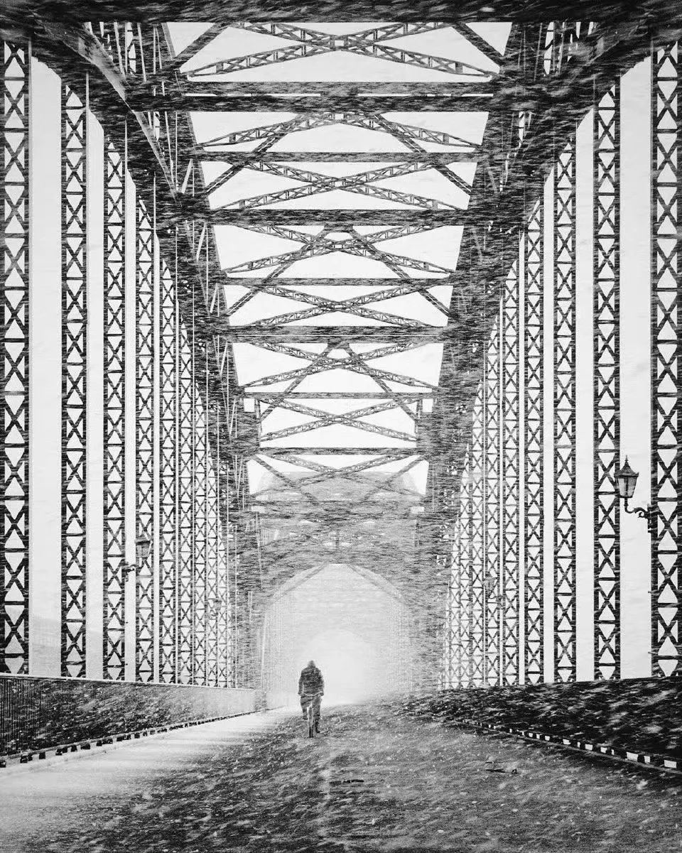 夜晚准是巨大的弯曲钢梁构成,