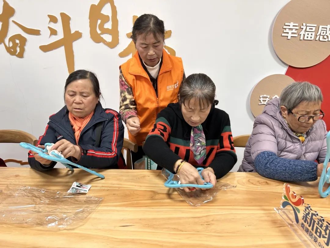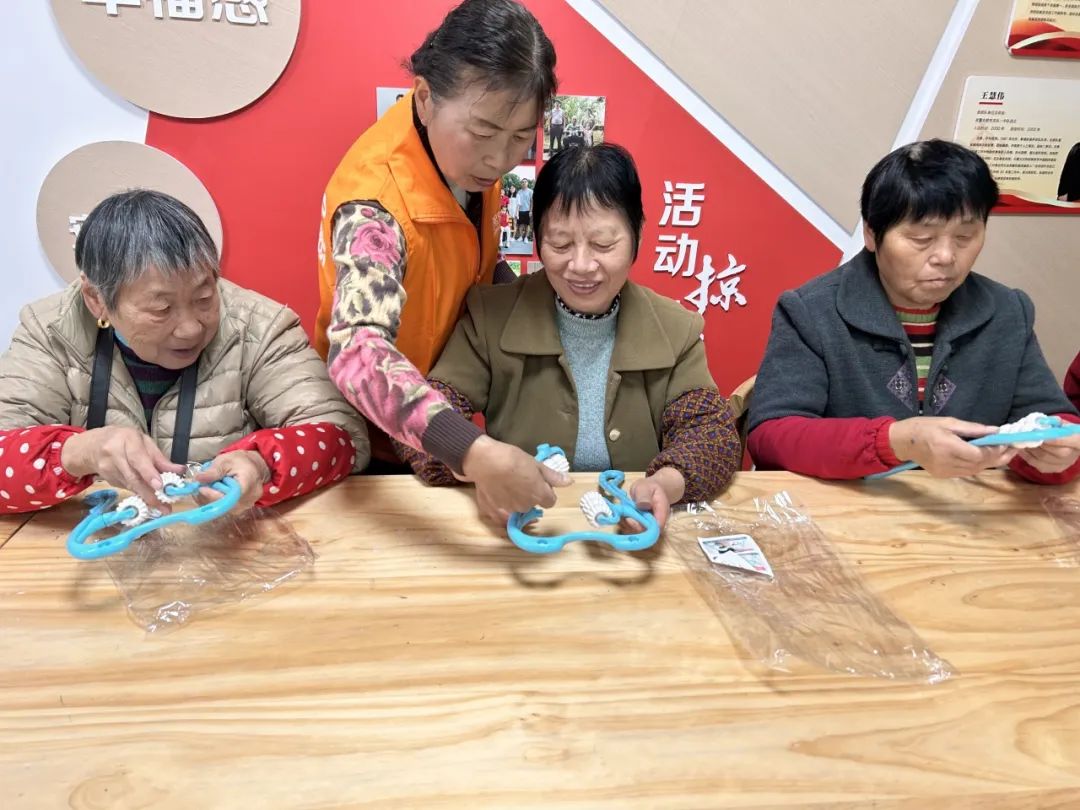 活动开始,工作人员下发了颈椎按摩工具半成品并教导老人完成组装,让他们了解按摩工具的工作原理。