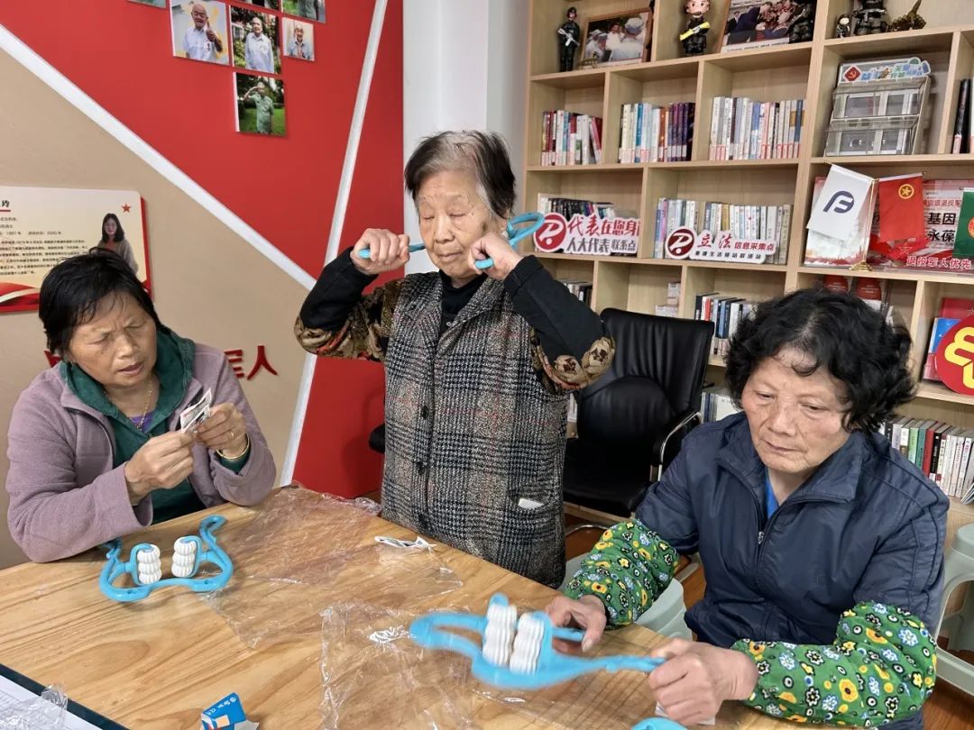 聚焦老年人实际需求,从老年健康服务出发,奉浦街道因地制宜开展多元特色的社区活动,让老年人享受到便利化、精准化的社区服务。秦塘生活驿站工作人员设计了一套利用手动按摩器操作的简单易行的颈椎操,帮助老人舒缓颈椎压力、改善血液循环、增进身心健康。