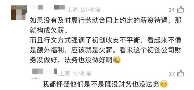 据报道,涉事公司对于“积分制度”还自有一套说辞:“鉴于初创团队的特殊性,我们创新地采用了积分制来明确员工的当前投入及未来收益实现路径。员工可以选择积分+现金一定比例组合的薪资包,规范积分兑现的规则:兑现时间、兑现方式、计息比例、转股方案等。”从这番解释来看,涉事公司似乎不认为自己有什么问题,而是在用某种新的制度来激励员工。