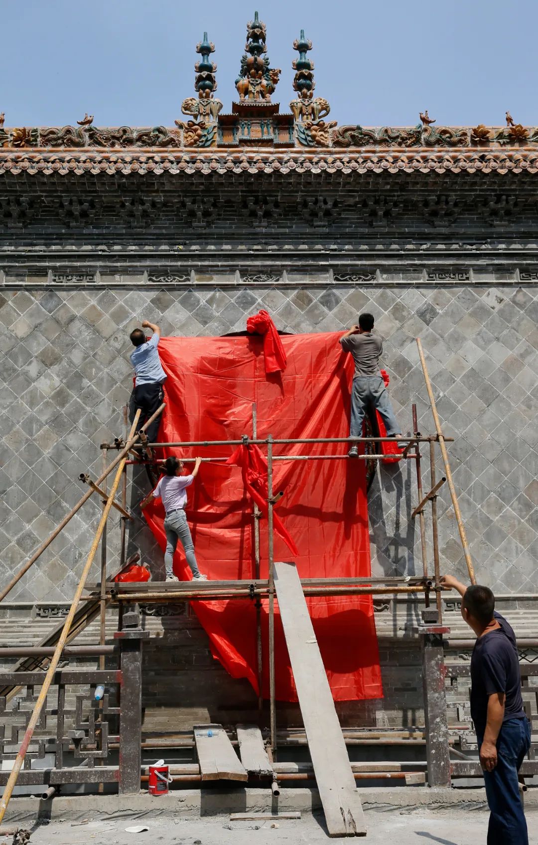 介休市中心广场的琉璃-麒麟闹八宝安装中