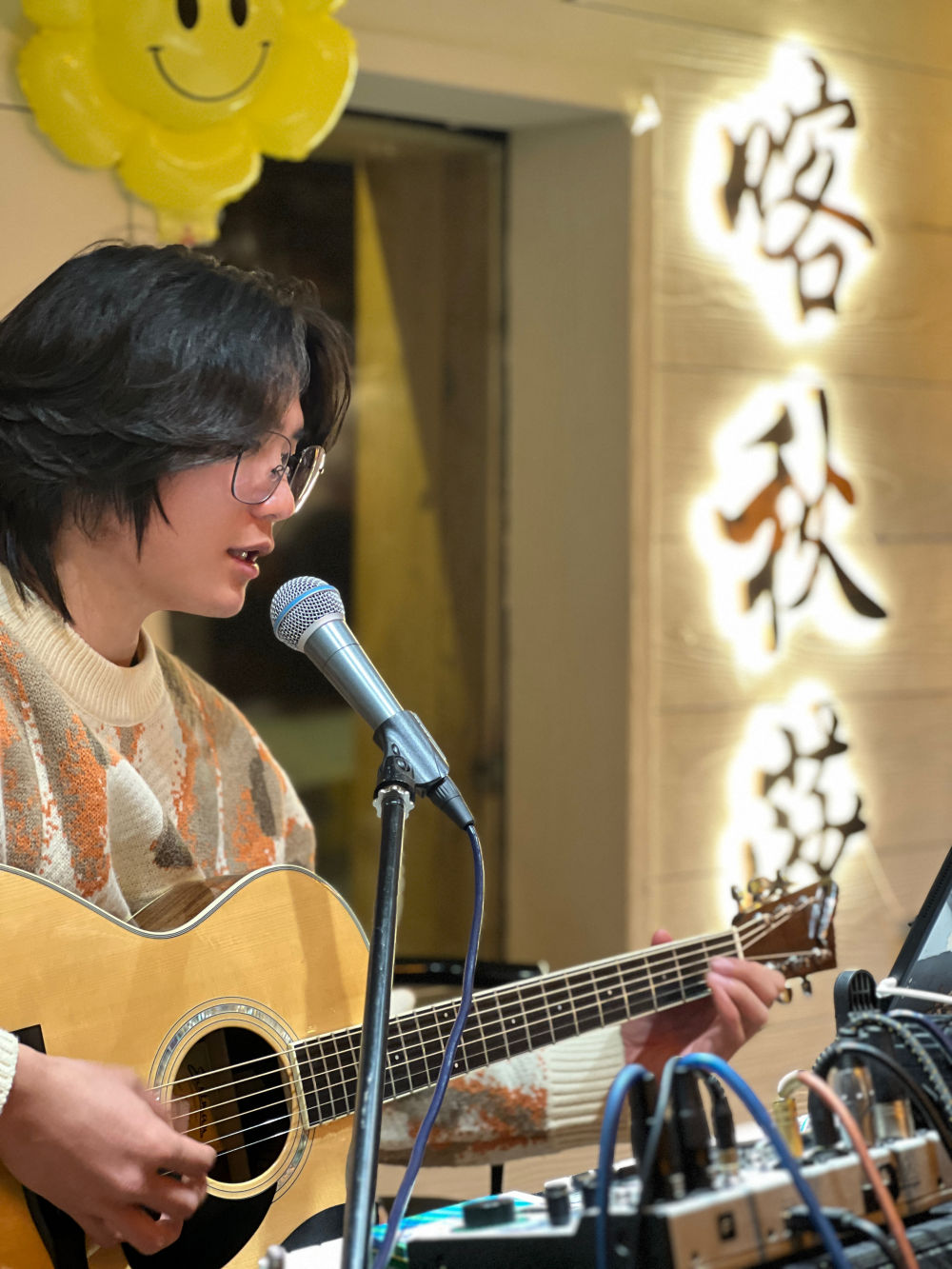 江西雪友秦浩东在禾木村一家餐厅做驻唱歌手。受访者供图