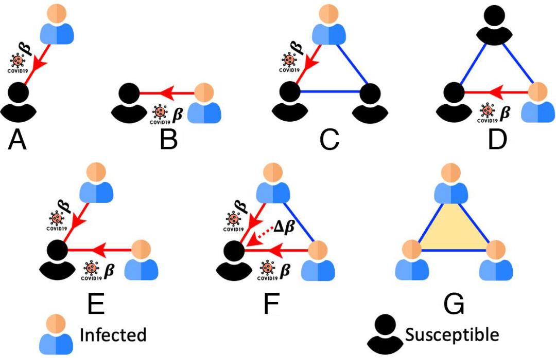 最近发表于PNAS的一项最新研究结果表明,复杂系统实体之间的高阶关系在系统功能背后发挥着重要作用,这与针对成对互动的传统研究重点形成了鲜明对比。受最近出现的关于个体通过社会交往获得的病毒剂量与感染风险之间潜在关系的观点启发,该研究关注社会网络(如家庭、宗教和购物活动)中的高阶或群体互动(用单纯复形来描述)如何影响疾病传播的动力学和相关的缓解策略(如在大型聚会中,个人受到感染的概率更高)。