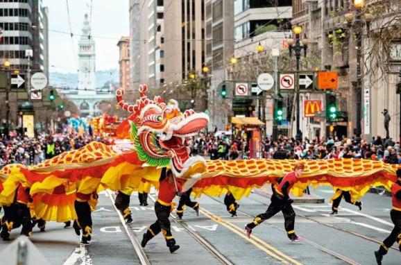 不仅在与中国邻近的亚洲国家,在欧洲、美洲、大洋洲乃至世界各地,只要有华人辛勤的足迹,就可以看到中国龙矫健的身影。越来越多的西方人也开始认识到中国的龙文化。2004年春节,法国隆重举行中国文化年,中国龙被来自北京的市民代表挥舞起来,吸引不少法国民众上街观赏。2006年9月中旬,一场独特的中国时代大型娱乐活动也在德国北部著名城市汉堡举行。一条7米长、5米多高、4吨多重的巨型青铜龙被塑造起来。时任汉堡市长奥勒·冯·伯思特感慨:在整整3周时间里,中国龙成了这座城市的重要象征。而在美国西海岸城市旧金山,当地的中国农历新年大游行被誉为亚洲之外规模最大的春节庆祝活动。每年农历春节,这里都会举办规模宏大、丰富多彩的庆典活动。巡游队伍长达数千米。舞龙舞狮、武术、歌舞、行进乐队等多种形式表演吸引观众驻足。其中最受美国观众期待的节目之一就是舞龙表演。如2016年时,28英尺长的金龙,就在100人团队协作下,步行穿过旧金山街道。值得一提的是,旧金山农历新年庆典活动是收费的,但30美元的门票售价仍然挡不住观众的热情。我们有理由相信,在当代,中国龙正在飞向世界,并在西方文化中重构对其的正确认知。