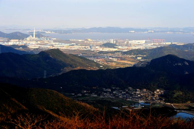 从舟山岛主峰看钓浪围垦区域这些新增面积主要归功于东港围垦、钓浪围垦、钓梁围垦、金塘岛北部围垦、小洋山围垦以及马目东西大塘等围垦项目的建设,也归功于测量技术的提高。