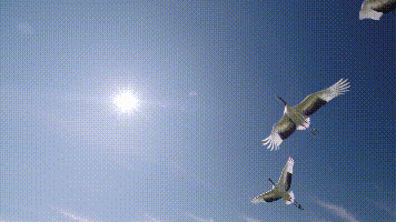 丹顶鹤从身边滑翔而过