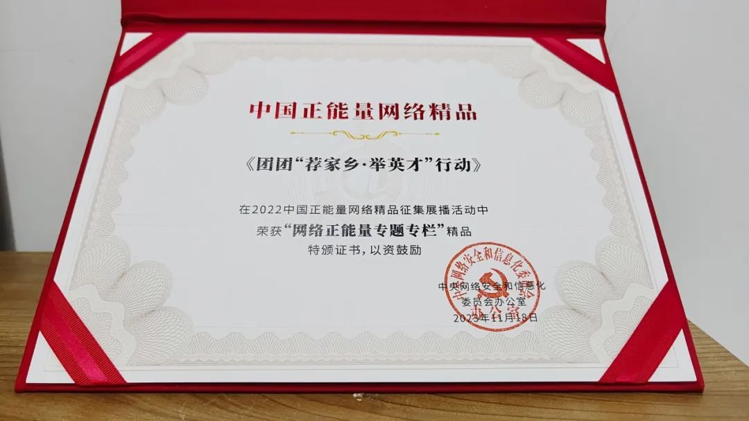 今年,由中央网信办主办,以“团结奋进新征程,同心奋斗创伟业”为主题的中国正能量网络精品征集展播活动揭晓结果。经过初选、专家审核评议、网络展播投票、终选以及结果公示,550件网络精品脱颖而出。团省委推报的“团团‘荐家乡·举英才’行动”获评“网络正能量专题专栏”,这是团省委推报项目首次在中国正能量网络精品征集展播中上榜(全省共3个项目获评,全国省级团委共5个项目获评)。