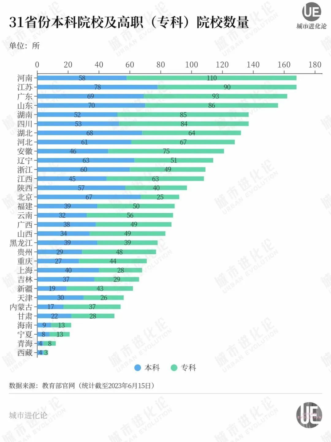 事实上,山东高等教育的困境有些“另类”。跟河南、河北“高校总量大、本科占比极低”相比,山东不仅高校数量(156所)排在全国前四位,本科高校数量(70所)更是高居全国第2位,仅次于江苏。
