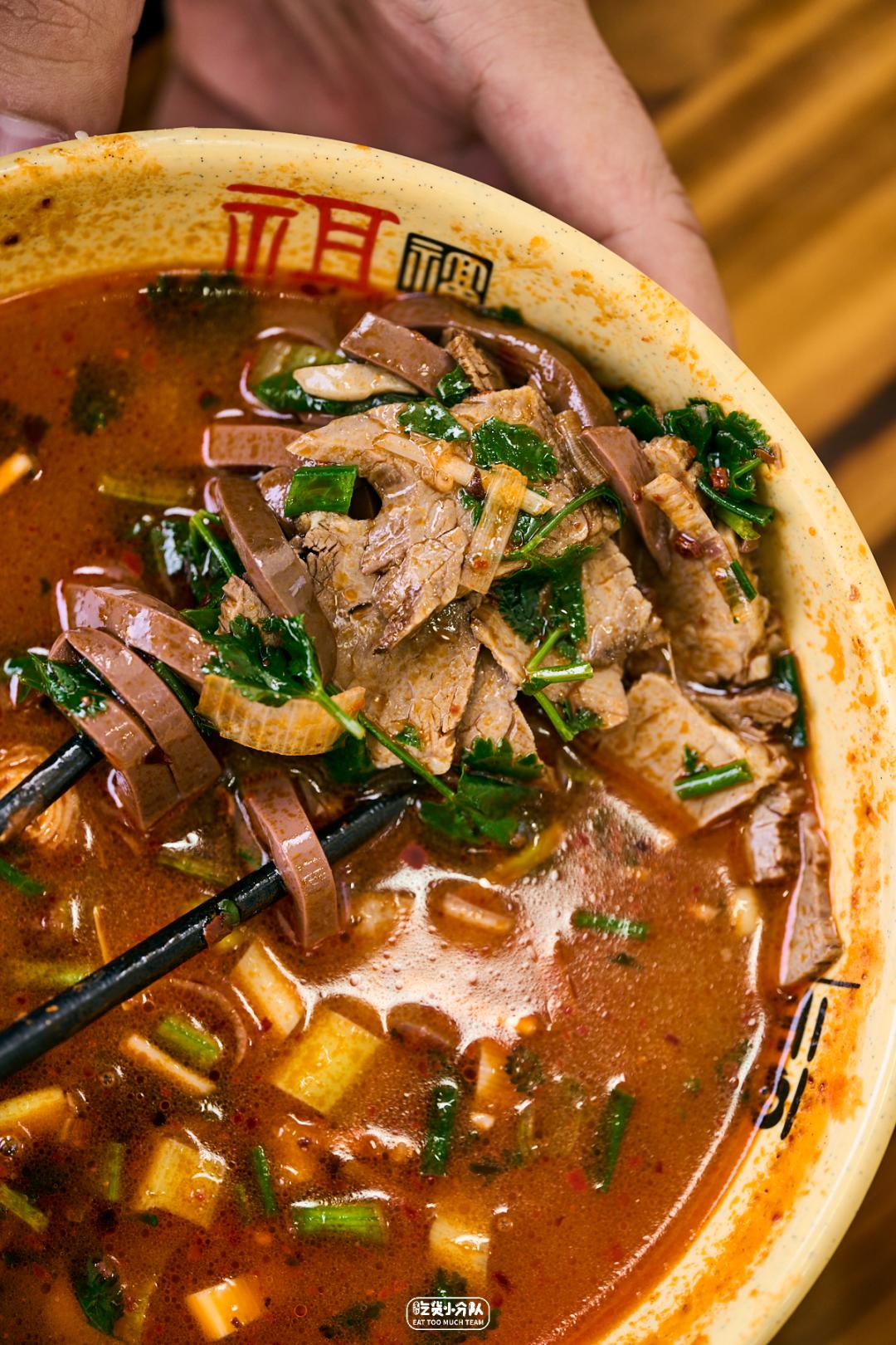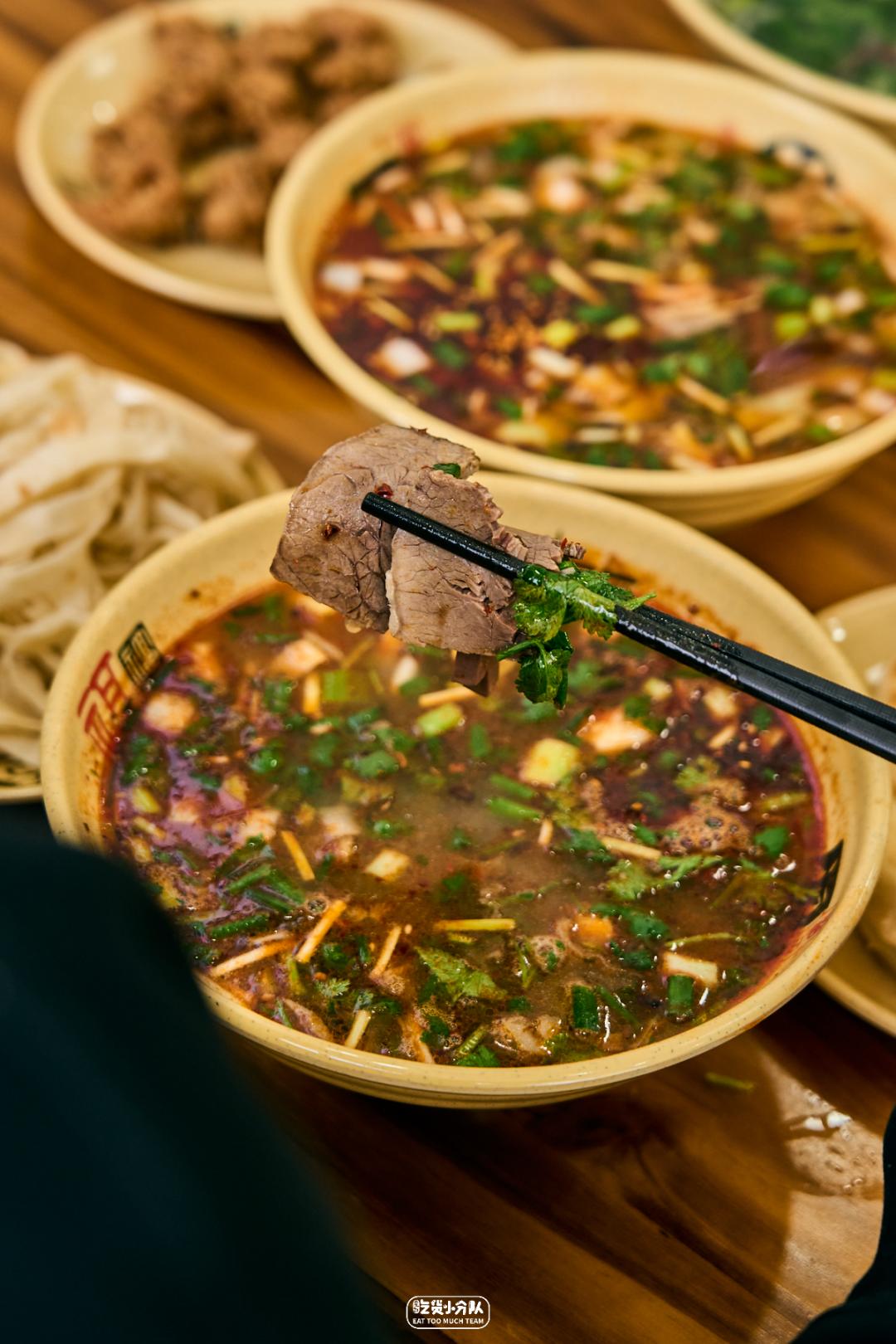 洛阳牛肉汤自成一派,牛肉提前卤好切片,碗底放牛血,自制辣椒必须得用牛油,才能香而不辣。这家汤用牛骨和牛肉,提前一天就开始熬,足足8小时,不续水,卖完就没了,每天绝对要趁早喝。再配上许久没宠幸的限定版主食,洛阳老乡表示很正宗,鉴定完毕!汤免费无限续,可是洛阳从古至今的规矩,地方虽变“光荣传统”不能忘。03