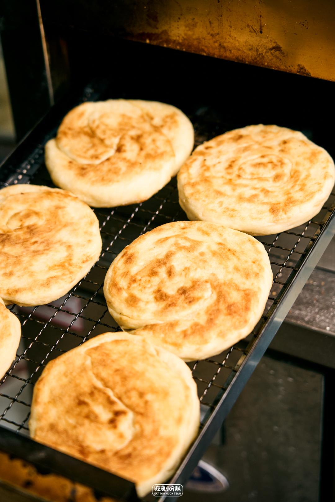 虽然不是更具洛阳特色的“油旋儿”,但这烧饼也是地道的河南风格,发面团加油酥和五香粉,简单卷个旋儿,炉子里现烤现卖。直接啃就不赖,掰成块泡汤更好吃,暄软的泡馍连汤带水,不知不觉碗就空底了。老乡走时都要打包上几个,好几次碰上狂热粉丝,吓得老板都不敢多卖了。