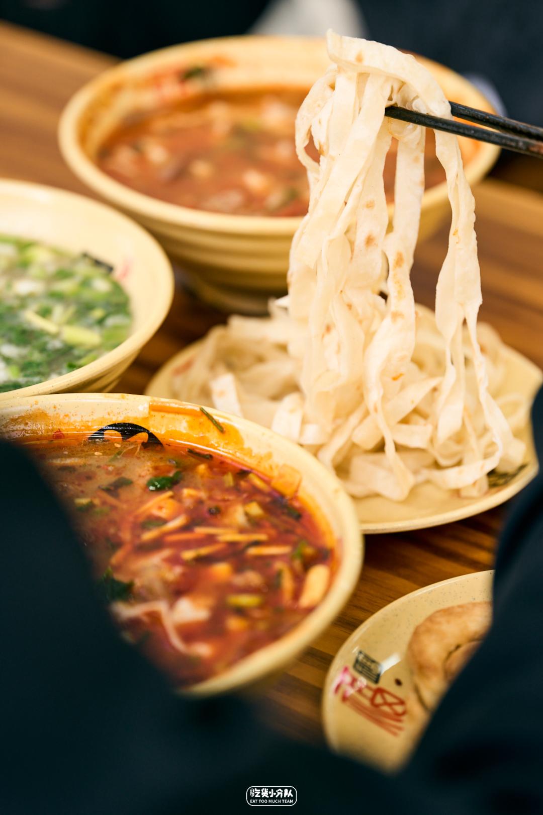 饼丝基本每家都有,据说洛阳人吃过的饼丝,能把地球绕成毛线球。这家的饼丝和烧饼,都是来自老板丈母娘的手艺,光听后厨的洛阳伊川口音,地不地道心里就有数了。每天现摊,烙饼擀薄后双面烙,原始的麦香味,柔软筋道。直接泡在汤里,裹着红油捞出,软糯又辛香油润。02