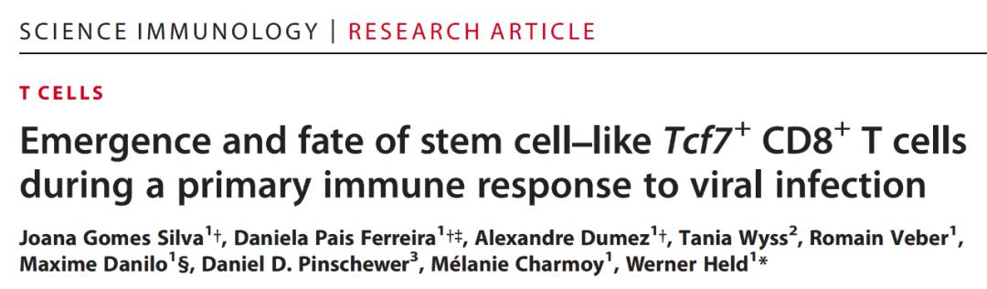 近日,瑞士洛桑大学的研究人员在 Science 子刊 Science Immunology 上发表了题为:Emergence and fate of stem cell–like Tcf7+ CD8+ T cells during a primary immune response to viral infection 的研究论文。