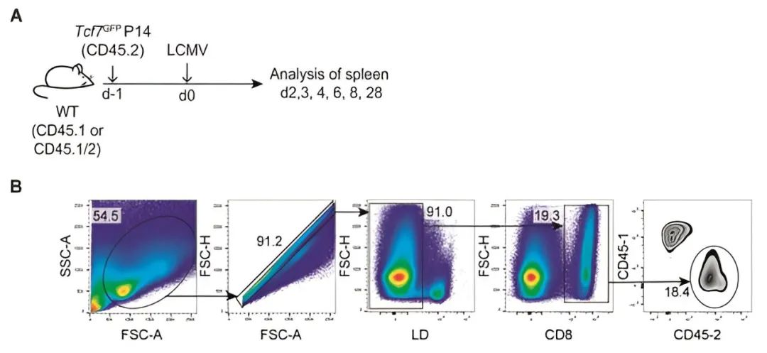 该研究确定了干细胞样中央记忆T细胞(TCM)的前体细胞——干细胞样Tcf7+ CD8+T细胞,并追踪了它们在病毒感染初始免疫反应中的出现和命运。