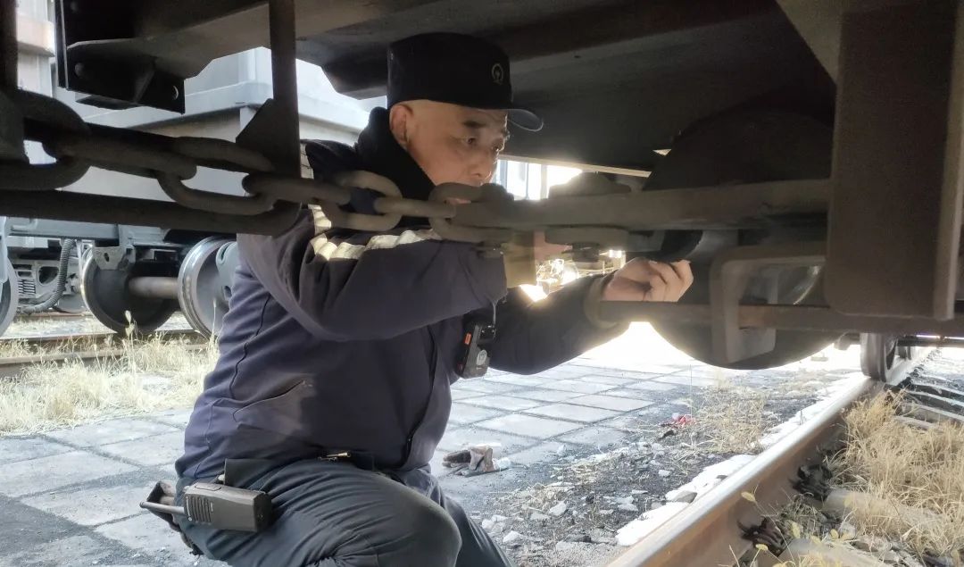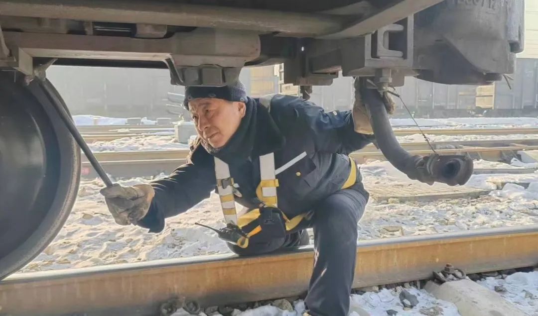 大新运用车间 齐润业我是大新运用车间检车员齐润业,我在大新站进行新年的第一次列检作业。坚持恶劣天气标准不降,作业流程一丝不苟,检修巡查一处不落,确保货物列车“零故障”始发。