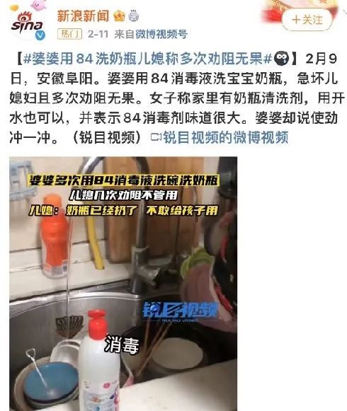新闻中宝妈多次劝阻,认为84消毒液味道大,主要还是担心用84消毒奶瓶后清洗不彻底,残留物质或异味可能对婴幼儿健康不利。