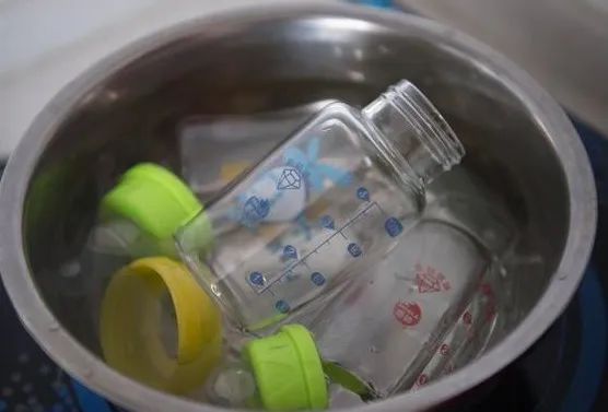 将奶瓶、奶嘴、盖子等打开,放到锅里浸没于水中,煮沸后维持10分钟左右,捞出沥干即可。不锈钢、玻璃材质可冷水入锅,硅胶、PP(聚丙烯)、PPSU(聚亚苯基砜树脂)等材质可待水沸腾后再入锅。
