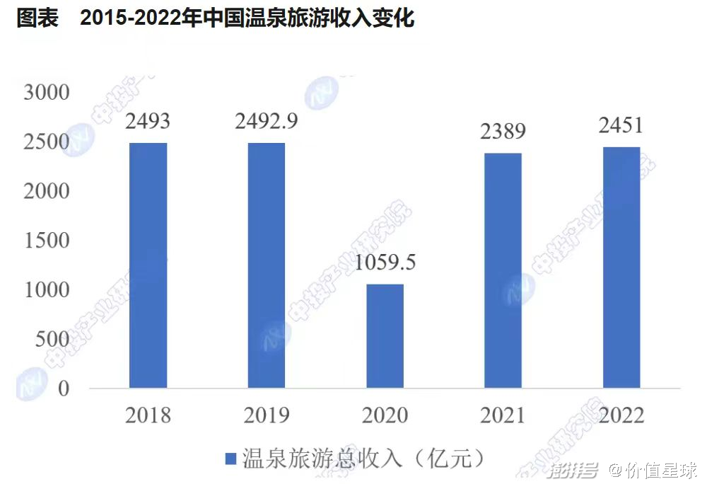 根据中投产业研究院的数据,2018-2022年期间,除了2020年受疫情影响,我国的温泉度假旅游收入仅为1059.5亿元外,我国的温泉旅游收入一直保持在2500亿元的水平。这意味着,温泉旅游已经在这个收入水平上保持了多年的稳定。