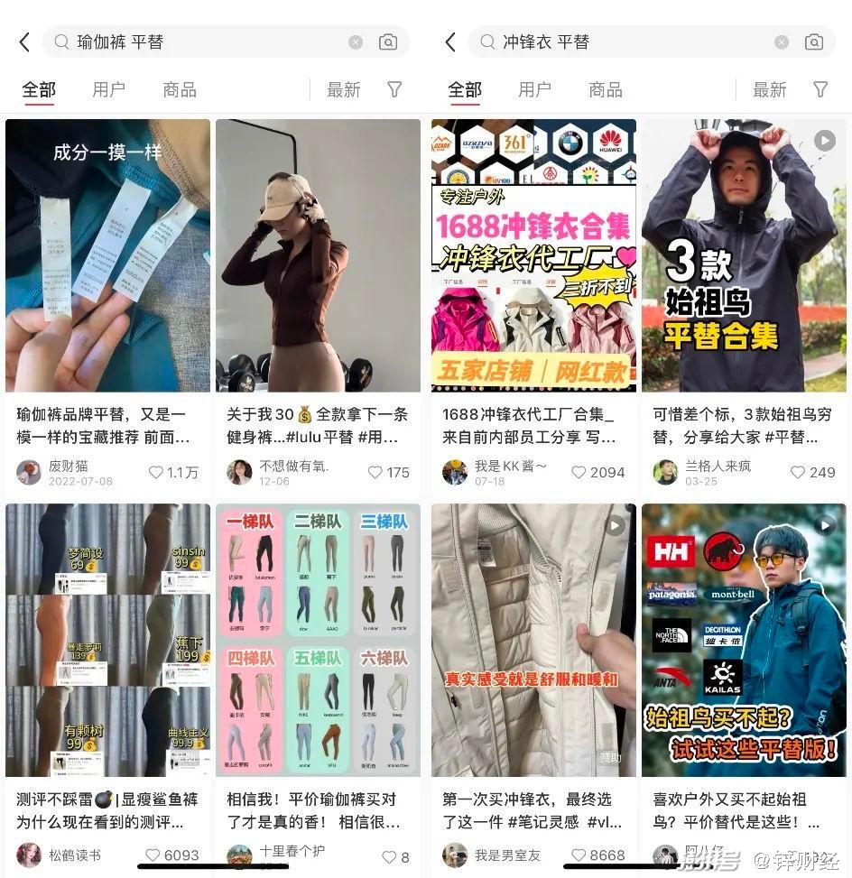 小红书的博主更是发掘出1688、闲鱼等平台贩卖出厂价的贴牌瑜伽裤,以五六十元一条的价格,随便穿随便穿,洗松了就丢掉也不心疼,瞬间俘获了大量消费者。