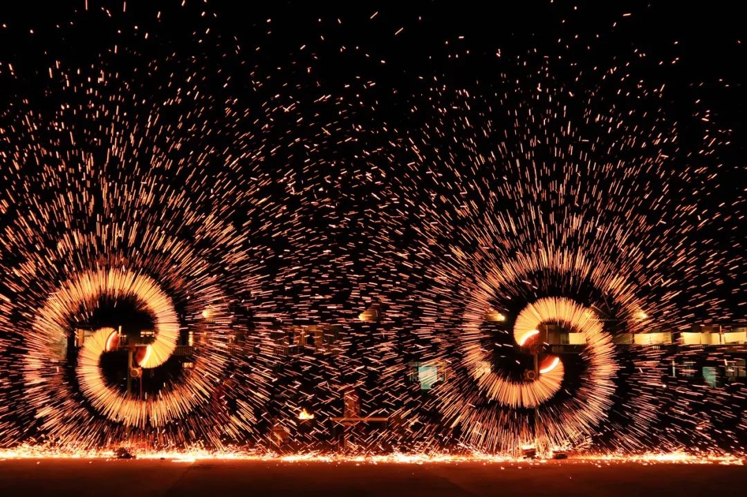 像春风吹开了千树银花,又像满天繁星雨点般落下。万千铁花冲破漆黑的夜空尽情绽放,是独属于华夏文明的浪漫和热烈,也是传承千年的中式浪漫。