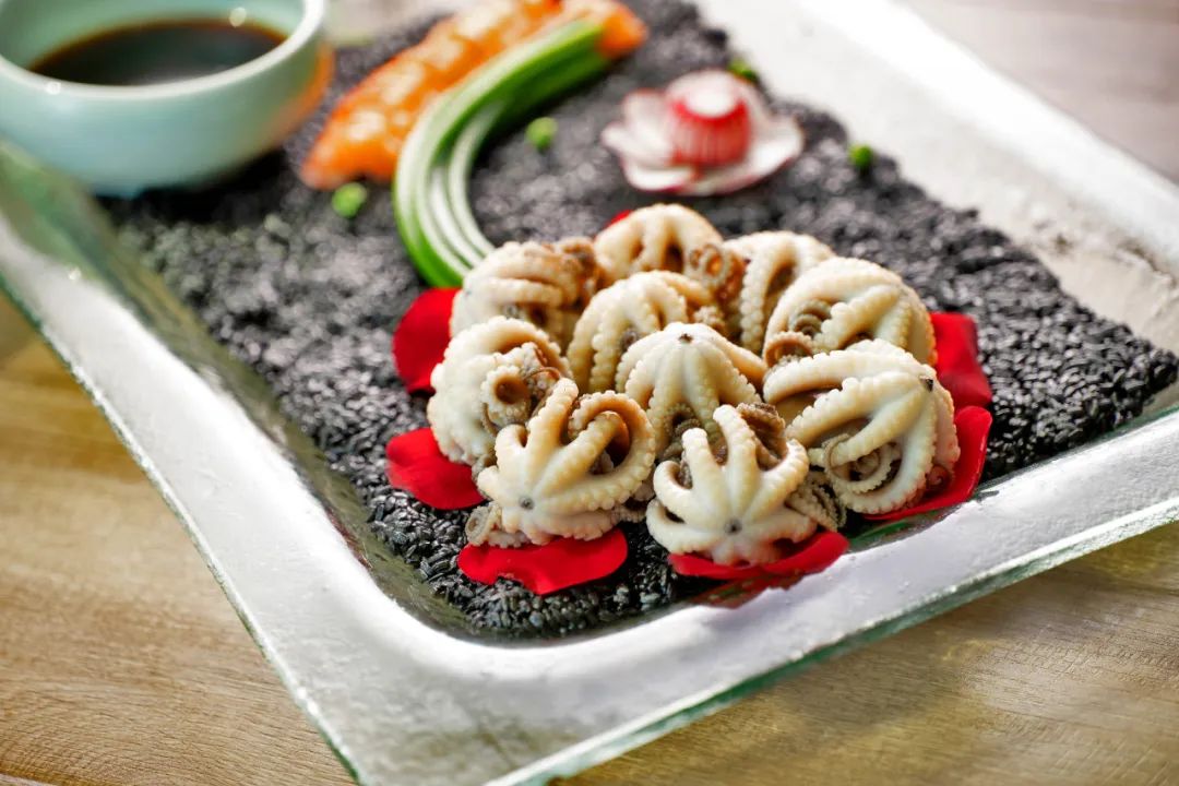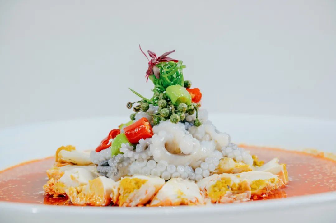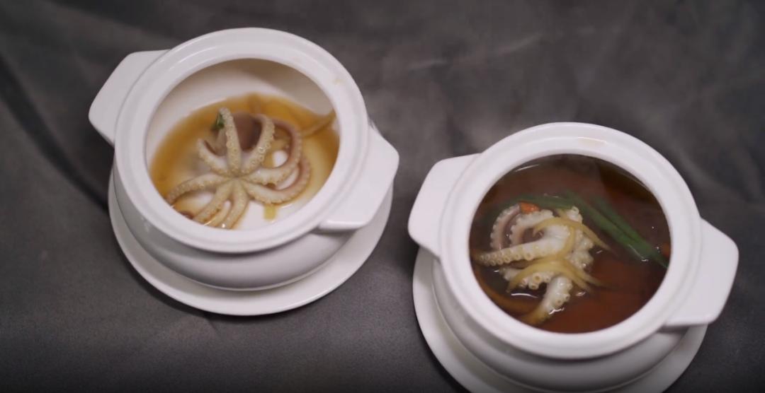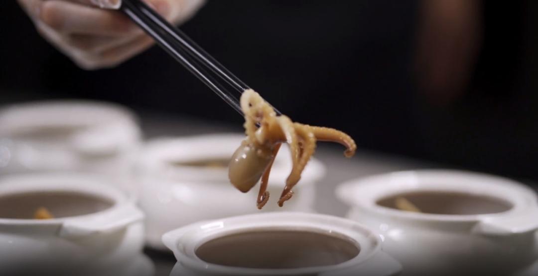 清汤的烹饪手法,将望潮的鲜嫩韧劲、弹牙脆嫩完美呈现。熟透的望潮好像一朵盛开的花,挟起一个放在嘴里,咬在嘴里感觉吸盘还在收缩,味鲜至极,让无数食客赞不绝口。