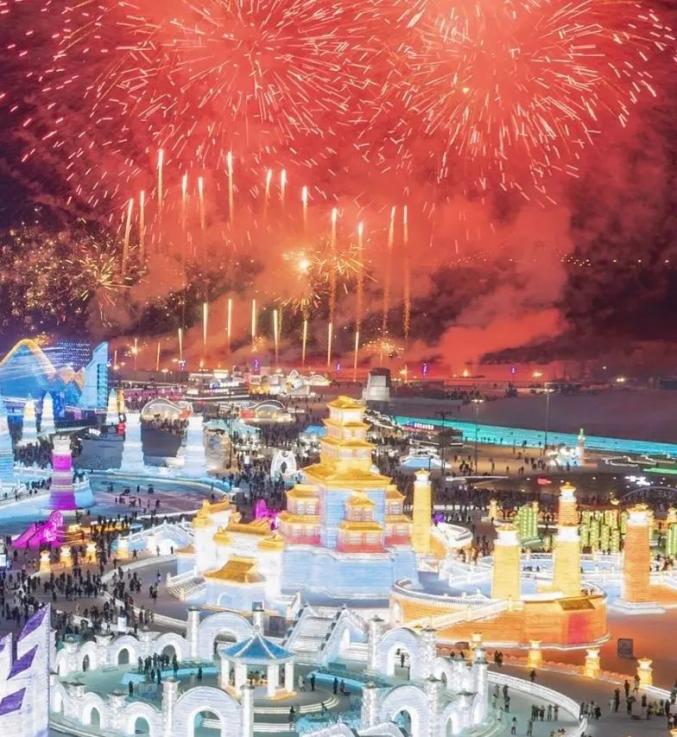 哈尔滨冰雪大世界延时闭园雪地蹦迪、灿烂烟火、明星空降……