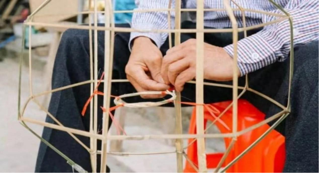 杨师傅是一位花灯手艺传承人,进入杨师傅家中,迎面而来的是一片热闹喧嚣之景。嘈杂的谈笑声、敲打声和剪刀切割声交织在一起,好似一场独特的“音乐会”。每到春节前夕,这里都会因为制作灯笼而变得热闹非凡。