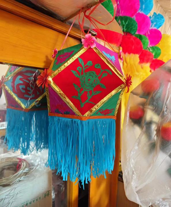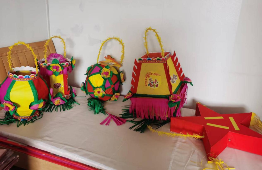 整个制作场景热闹非凡,房间里充满了欢声笑语,手艺人们互相帮助、分享经验、互相激励,营造出一种温暖和谐的氛围。在手艺人们的辛勤努力下,零零散散的材料变成了形态各异的手工灯笼,圆形、方形、五角星形各式各样、应有尽有。