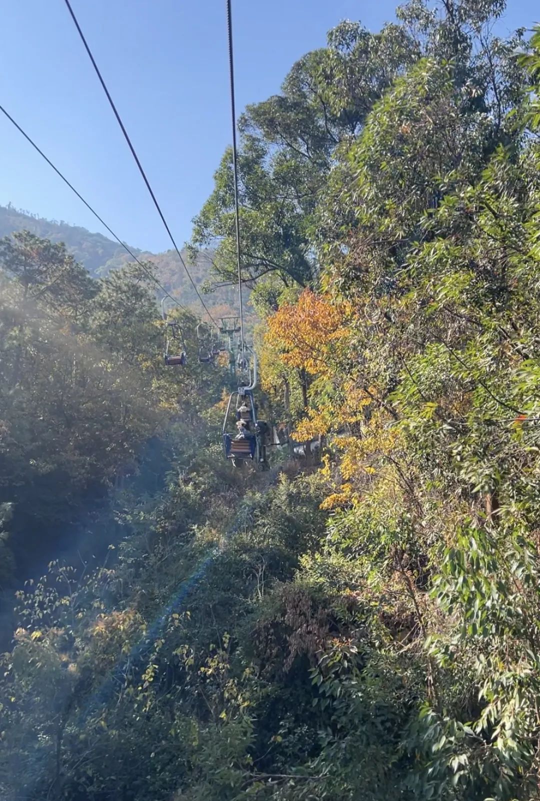 穿过层林尽染的景色身体坐索道心情像在坐火箭