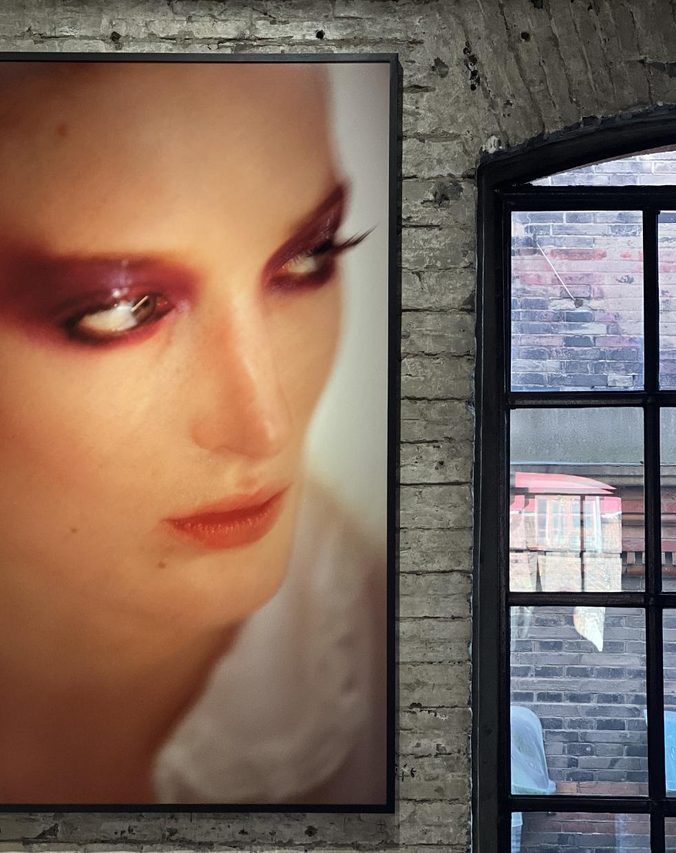 展览同名作品《她的名字叫红》。拍摄于2000年伦敦时装周的一场时装秀,当时一位红衣模特在狭窄的甬道上从容走过,构成了“一个时代的背影”。无数镜头在幽暗之处,成为静静的欲望之眼。镜头的主人将他们看到的美艳,在最快的时间之内,传到世界的每个角落。值得一提的是,图中模特衣着的色调接近Pantone 2023年度流行色“非凡洋红(Viva Magenta) 。这种微妙的深红色调,具有一种兼顾冷暖的平衡感,象征着无畏和希望,也仿佛在诉说着时尚经典的恒久。在观展现场,除了艺术家程萌的更多精彩作品展示外,还有特制视频、法国香颂音乐等视听氛围,为到场观众带来一场全方位沉浸式的观展体验。展览免费对公众开放,观展提前预约即可。