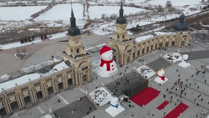 哈尔滨道里区群力音乐长廊上18米高的大雪人 来源:“哈尔滨电视台新闻综合频道”微信公众号诶?