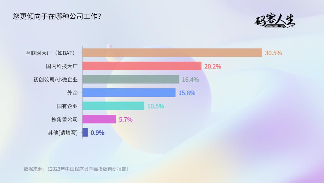【程序员最喜欢去的公司是互联网大厂,国内科技大厂和初创公司小微企业】