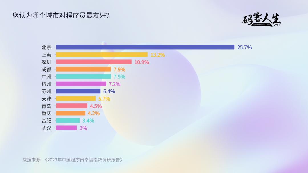 【程序员主要流入一线城市和新一线城市,最受欢迎的城市是北京】