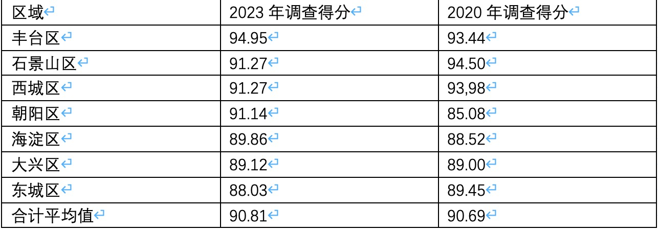 北京市7个辖区控烟环境2023年与2020年得分统计表 来源:北京市控烟协会调查结果与2020年比较,控烟环境建设总体上保持良好。本次调查的街乡一共160个,得分超过90分的为97个街乡,占60%以上。得分70-79分为41个,占25%;其中60-69分的街乡有3个,占1.8%。