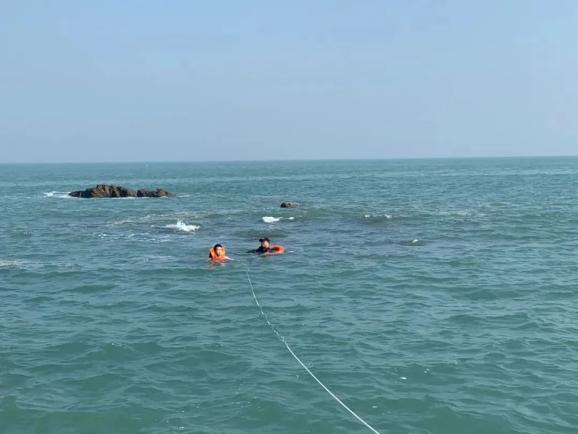 时间回到2023年12月31日11时33分,后石派出所接到报警,有人被困礁石。水位已经到膝盖,回岸的路已被尽数淹没,潮水仍在上涨,情况紧急。海风呼啸,黄仕发脱下警服外套,寒气立马让他不禁发抖,带上救生圈、系好救生绳,他径直朝被困男子方向游去。