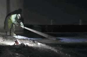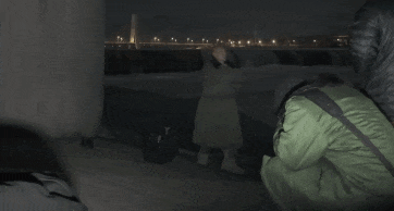 我们观察了一下最近怪鸽冬泳视频的发布时间,基本都集中在凌晨三点多到四点,于是我们决定,提前一个小时左右前往那里。凌晨两点半,我们从酒店出发了,本以为要蹲上一两个小时,可靠近那个地方时,康康突然说,“ 你看,那边有人!” 。