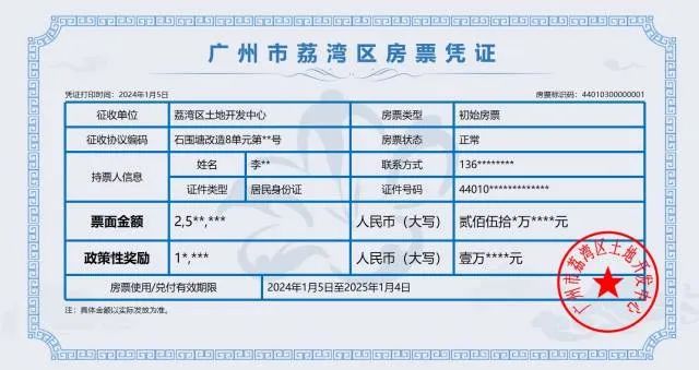 昨日,广州发出首张房票,房票凭证载明了房票类型、购房地址、票面金额、政策性奖励金额、使用/兑付期限等信息,可由本人或其直系亲属购买“定点入库”的新建商品房源。