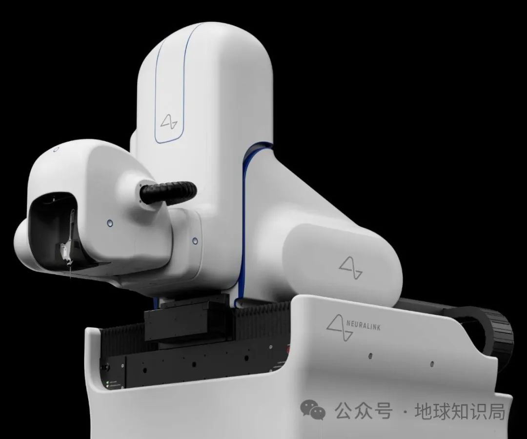 R1 手术机器人(图:Neuralink)微小的导线尺寸,使得同样的空间可以插入更多导线,获取更多的神经元信号,也大幅减少了大脑皮层的损伤、免疫反应和疤痕组织。值得注意的是,这些都是此前侵入式脑机接口面临的难题。