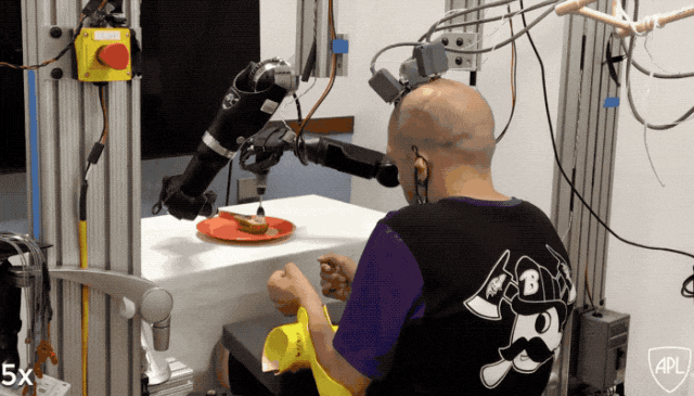 患者植入电极阵列后 经过几个月的练习就可以通过脑机接口自主进食了。图片来源:APL2023 年 8 月,加州大学 Chang 团队将芯片植入瘫痪者 Ann 的语言皮层,通过解读数十个基本语音信息的神经编码,让患者可以通过在脑海中“默念”输出语句,速度最高达每分钟 78 个单词,已经接近日常交流水平。