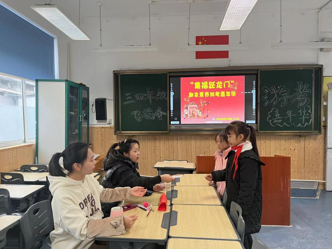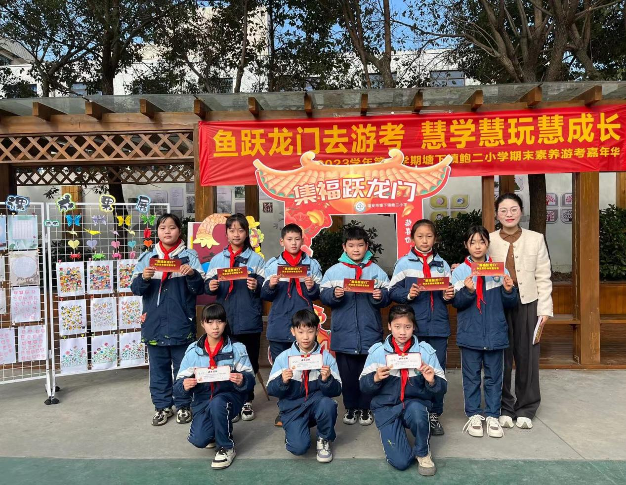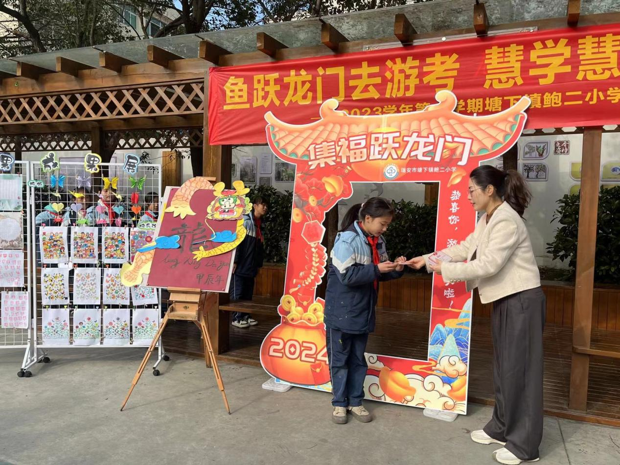 1月5日,塘下镇鲍二小学本着“减负增效、激发兴趣、培养能力”的原则,精心组织开展了“集福跃龙门”为主题的期末素养游考活动。