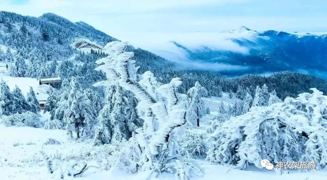 有人曾如此描述,“迎着飞舞的雪花,踩着厚厚的积雪,欣赏一路雾凇冰挂,缓慢地向神农顶方向“爬行”,森林中的积雪与冰冷反射出异样的光彩,如梦如幻。”