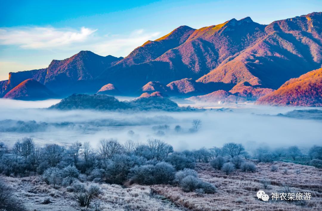 除却神农顶,每年大雪放晴后,高山湿地大九湖也会出现雾凇景象。上午太阳一出,树梢上的雾凇逐渐融化脱落,次日早上再次出现雾凇,一直持续到次年春。