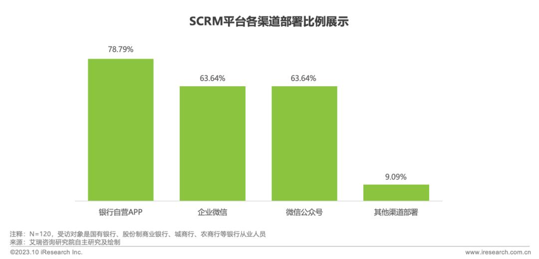 随着银行数字化转型进程的推进,营销作为银行直接触客与利润创造的核心环节,在市场需求的驱动、前沿技术能力的匹配与政策加持下,成为国内银行业“试水”数字化转型的优先选择。而手机银行APP作为银行自营的APP平台,在品牌背书、平台建设、技术能力等多方面相较于其他营销平台拥有较为突出的优势,在对120家国内银行的调研中,有超78%的受访银行选择在自营的APP平台开展用户的私域运营服务(SCRM),以手机银行APP为核心的银行营销私域运营体系建设将成为国内银行营销数字化转型的主流选择。