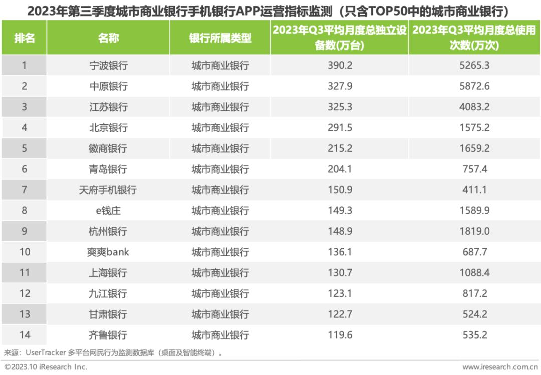 原标题:《艾瑞:2023年第三季度中国手机银行APP监测报告》